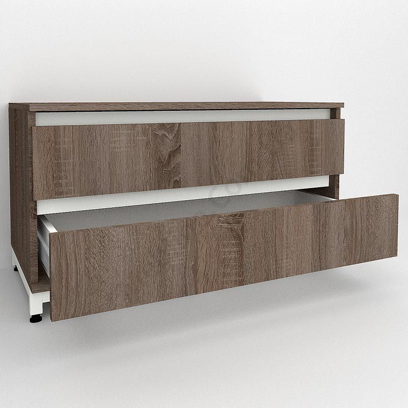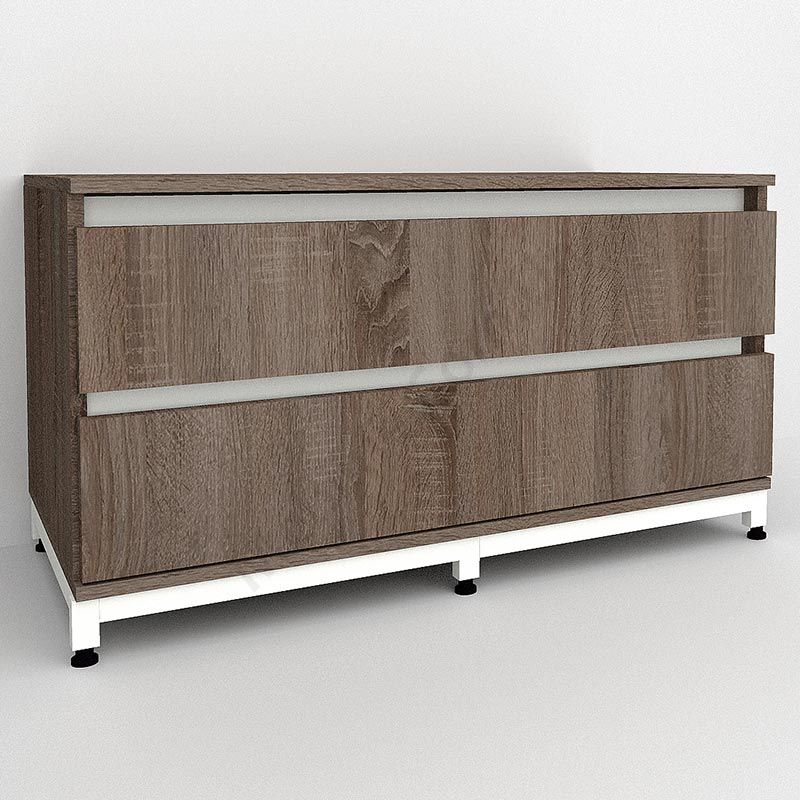 Виконаний з ламінованої ДСП Swiss Krono, завтовшки 16 мм.ДСП має високу щільність, екологічна безпека класу Е1.Протиударна кромка ПВХ, завтовшки 0, 5 мм.Корпус — металева труба 25х25 мм, товщина стінок 1, 5 мм.Дві висувні шухляди.Шухляди на телескопічних напрямних (400 мм) DC.Металеві ніжки.Підійде для приміщень у стилі лофт.