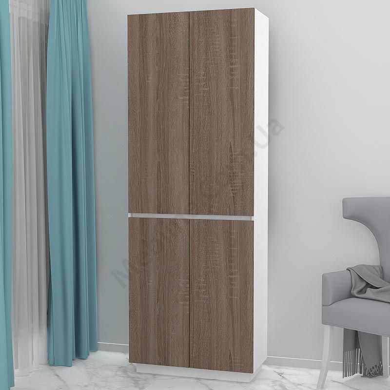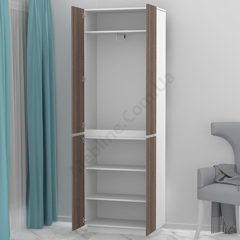 Матеріал — ламінована ДСП Swiss Krono, завтовшки 16 мм.Екологічна безпека класу Е-1.ДСП має високу щільність.Фурнітура — DC та Linken.Протиударна кромка — ПВХ, завтовшки 1 мм.Регульовані опори 70 мм.Чотири розпашні двері.За верхніми дверцятами мікроліфт для одягу та верхня полиця.За нижніми дверцятами три полиці.