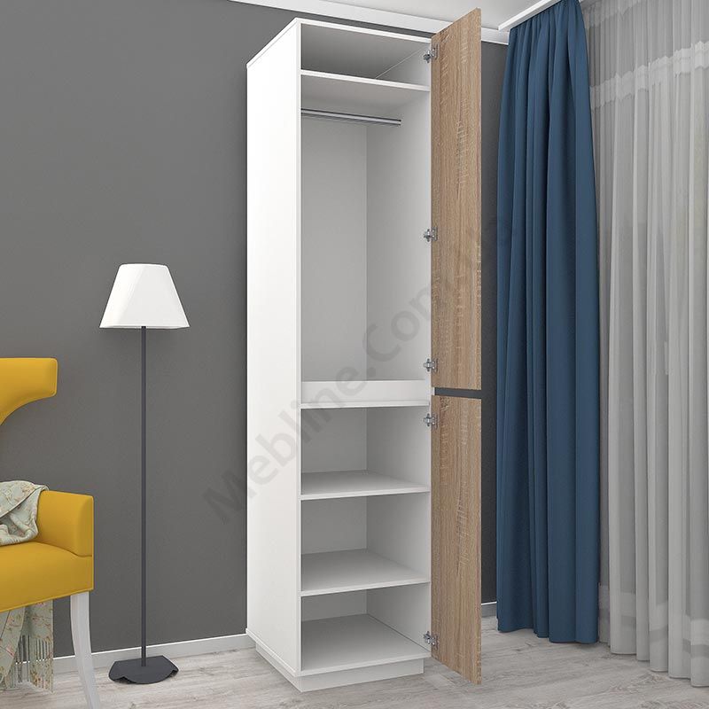 Матеріал — ламінована ДСП Swiss Krono, завтовшки 16 мм.Екологічна безпека класу Е-1.ДСП має високу щільність.Фурнітура — DC та Linken.Протиударна кромка — ПВХ, завтовшки 1 мм.Регульовані опори 70 мм.Дві розпашні двері.За верхніми дверцятами штанга для одягу та верхня полиця.За нижніми дверцятами три полиці.