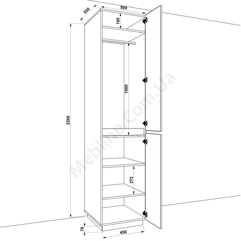 Пенал з полицями та штангою для одягу.