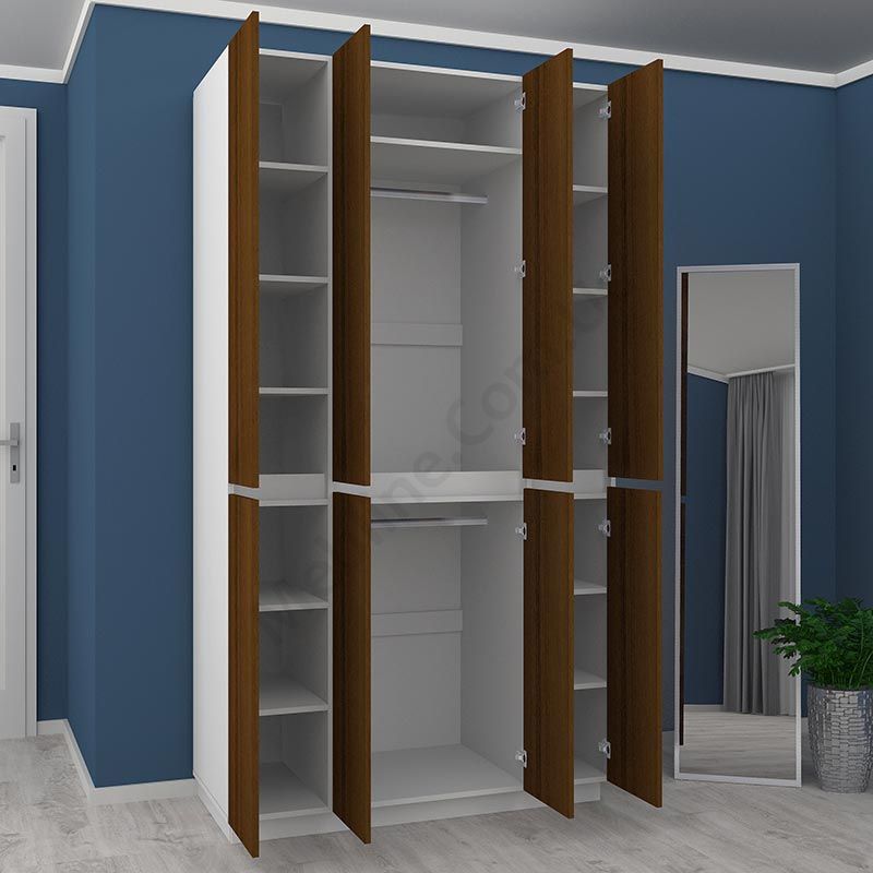 Чотирьохстулкова шафа з полицями та штангами для одягу.