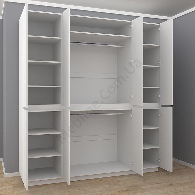 Чотирьохстулкова шафа з полицями та штангами для одягу.