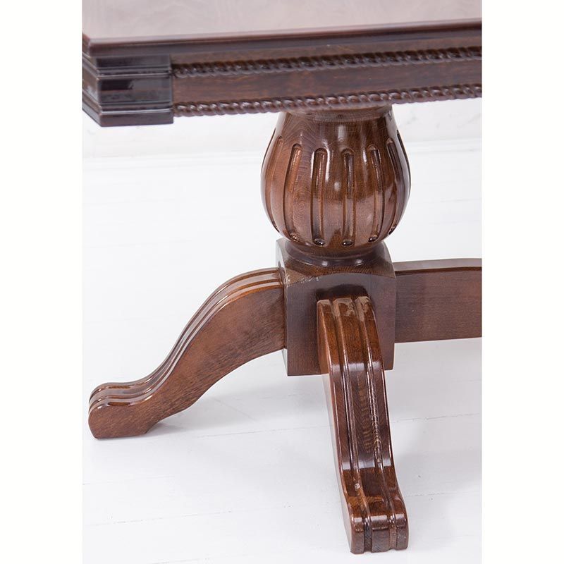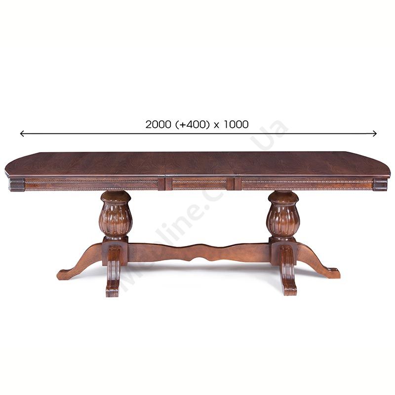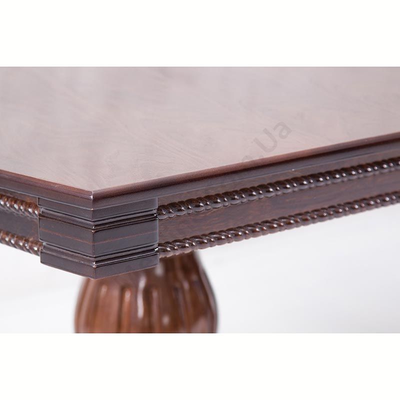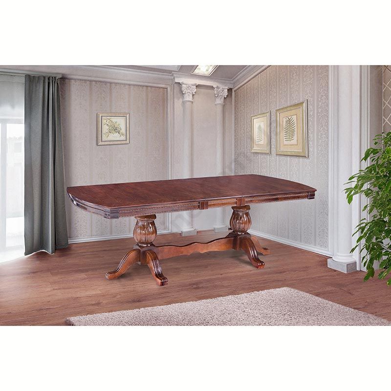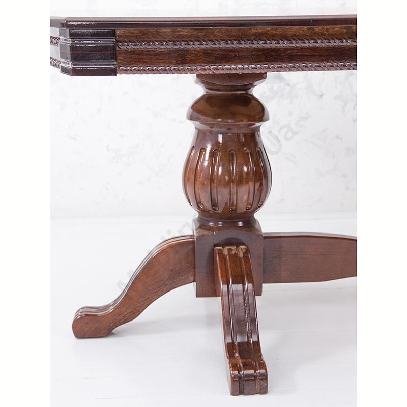 Великий розкладний обідній стіл на різьблених опорах.