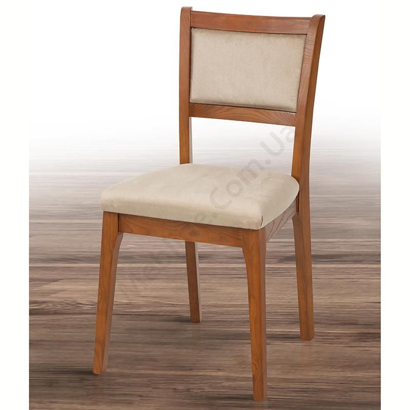 Обідній стілець з м’якою оббивкою сидіння та спинки.
