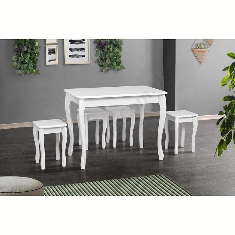 Обідній стіл із натурального дерева з фігурними ніжками в білому кольорі.