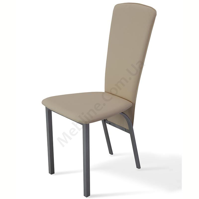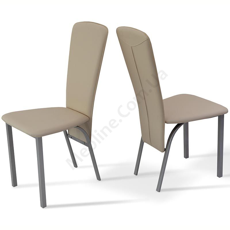 М’який обідній стілець із високою спинкою на металевих ніжках.