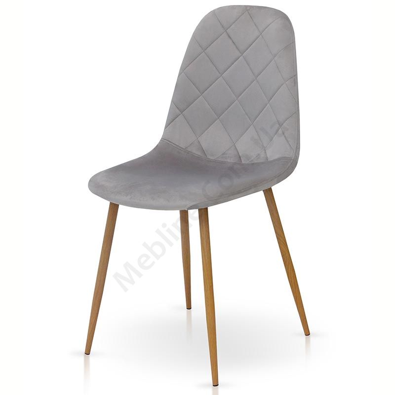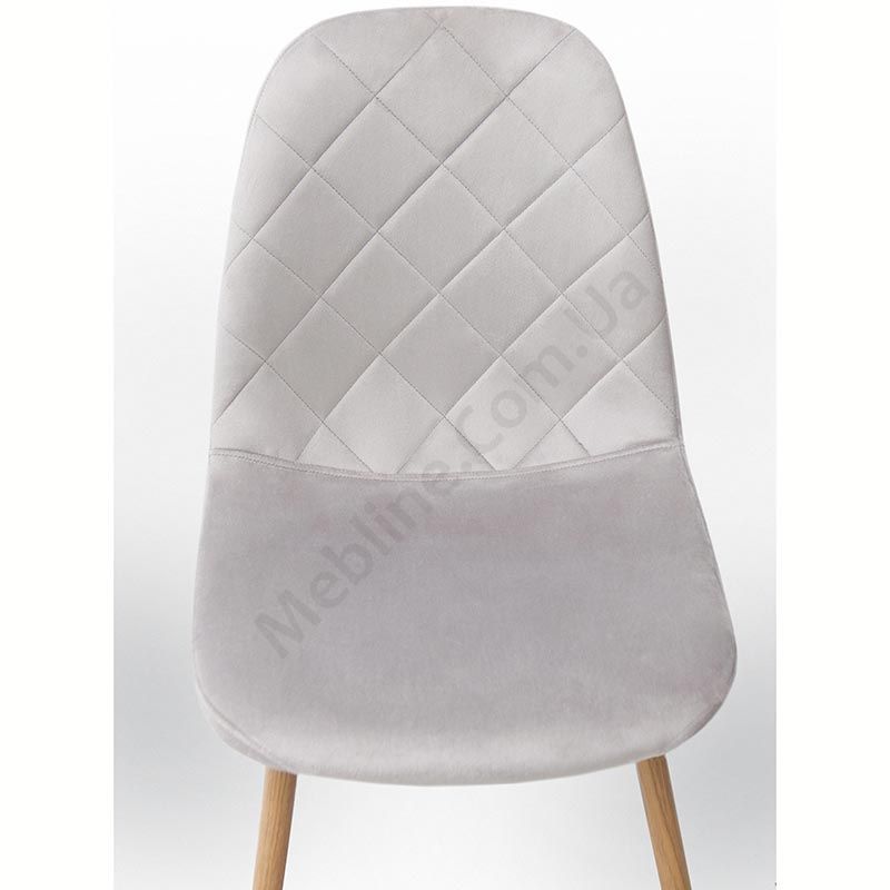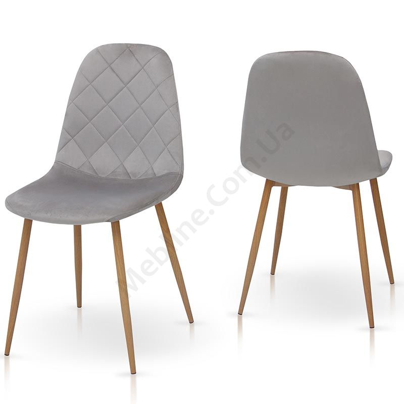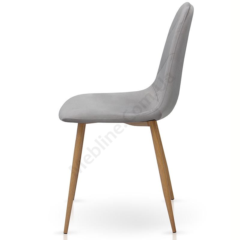 М’який стілець без підлокітників на металевих ніжках із тканинною оббивкою світло-сірого кольору.