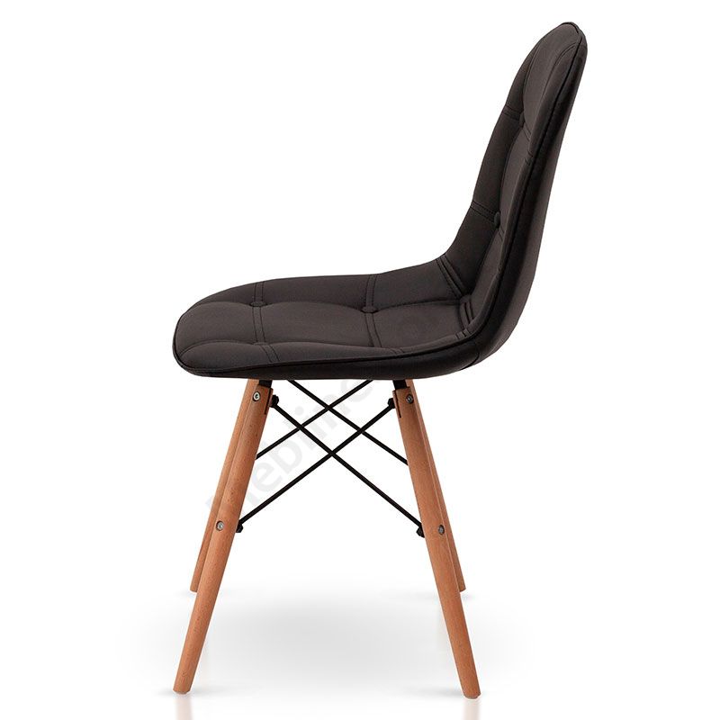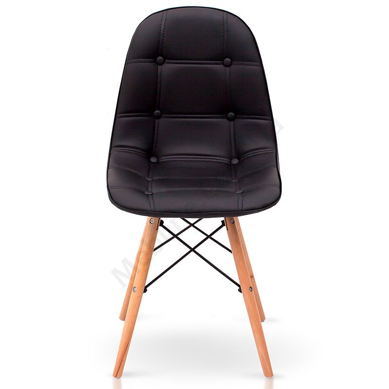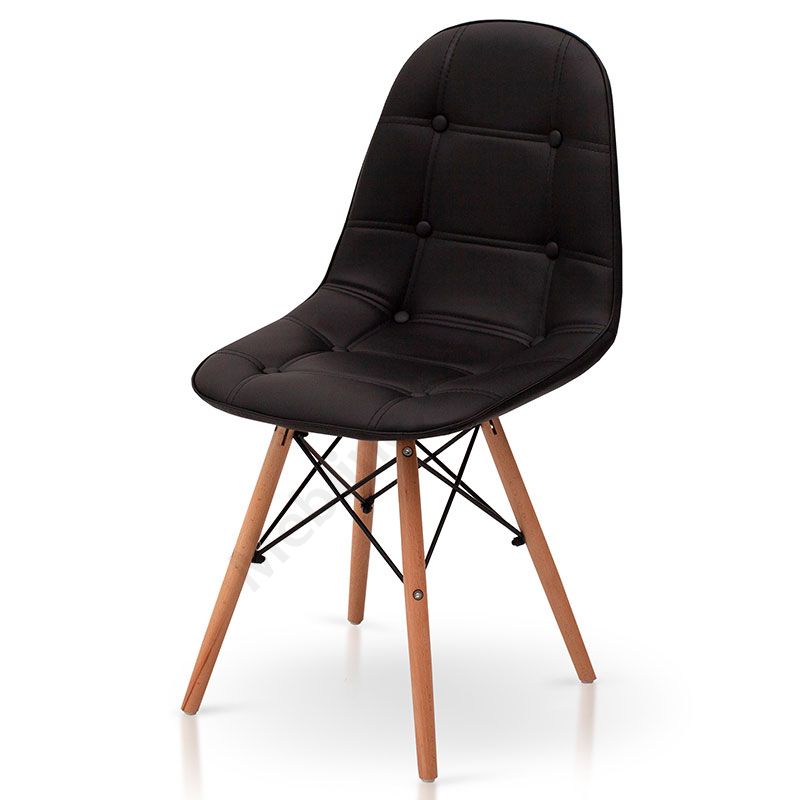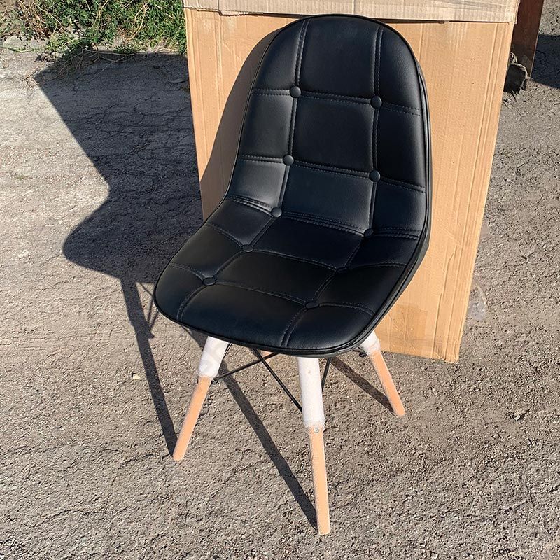 М’який стілець на дерев’яних ніжках з оббивкою чорного кольору.