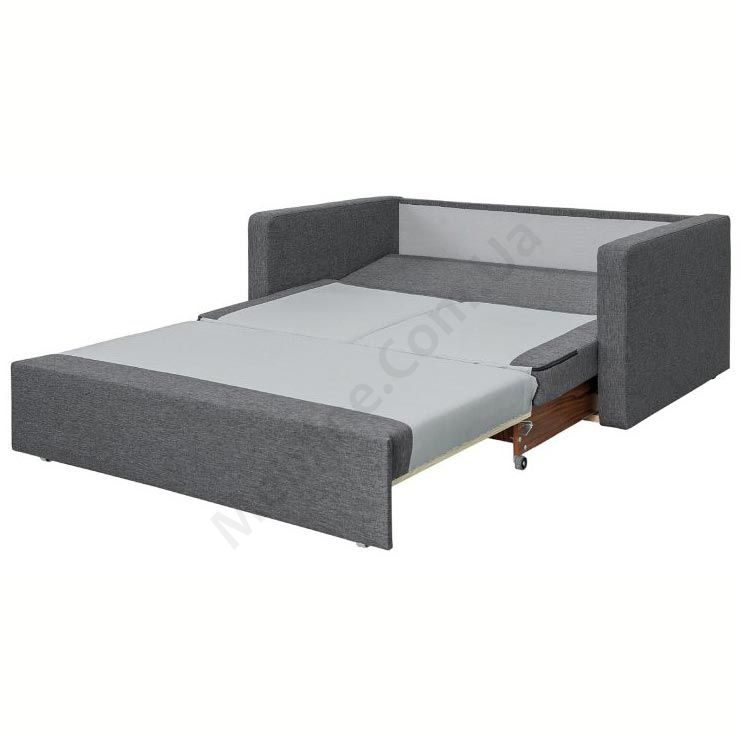 Розкладний диван з м’якими підлокітниками та подушками.