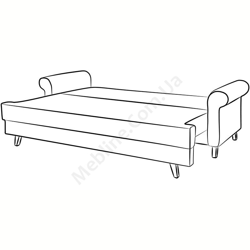 Розкладний диван на ніжках з м’якими підлокітниками.