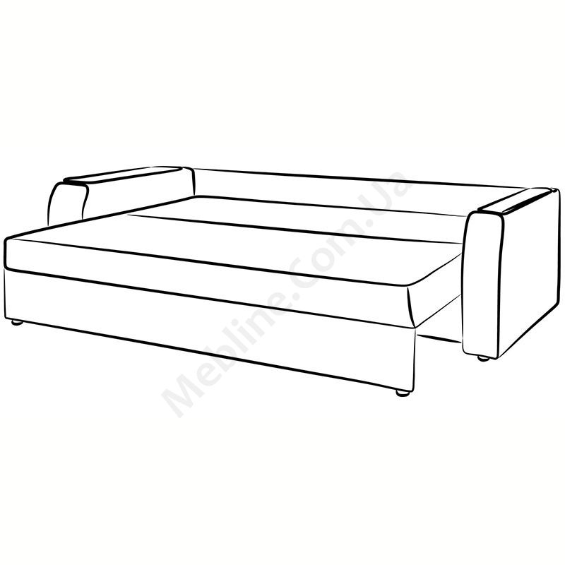 Розкладний диван з твердими підлокітниками та коробом для білизни.
