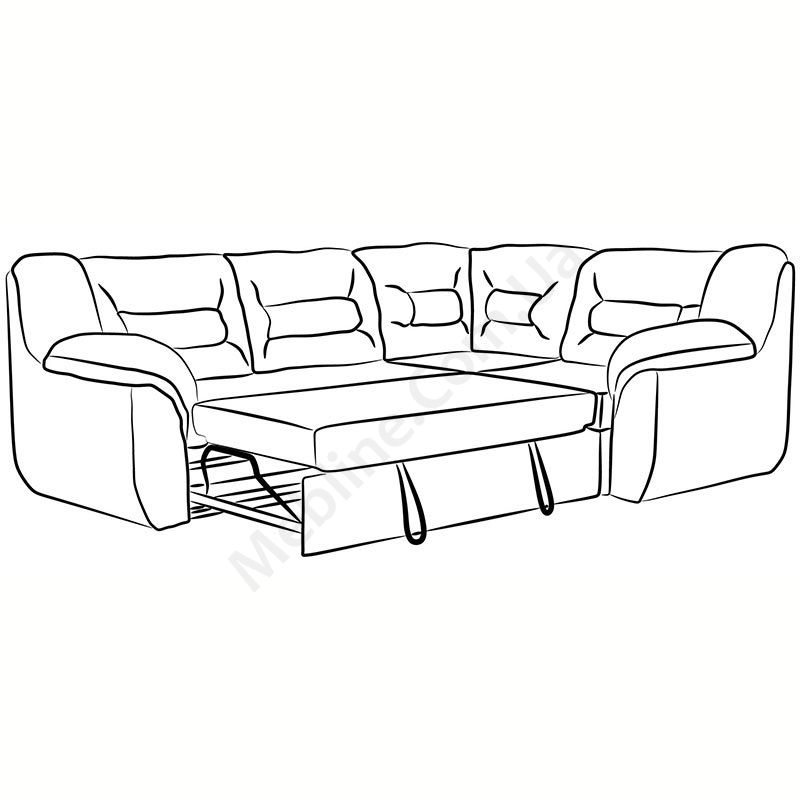 Кутовий м’який розкладний диван із широкими підлокітниками.