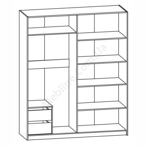 Дводверна шафа-купе з висувними шухлядами та дзеркалом.