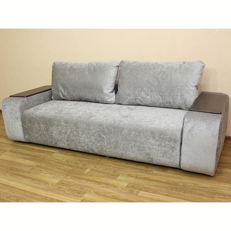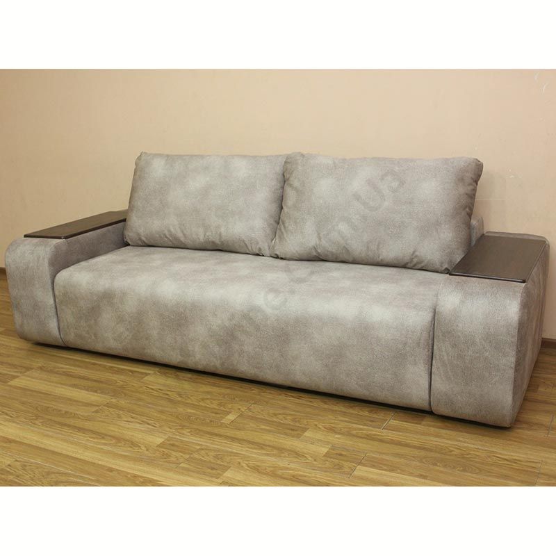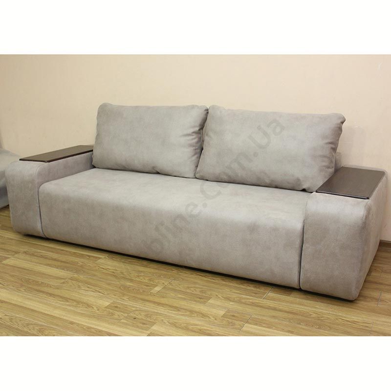 М’який диван із широкими твердими підлокітниками.