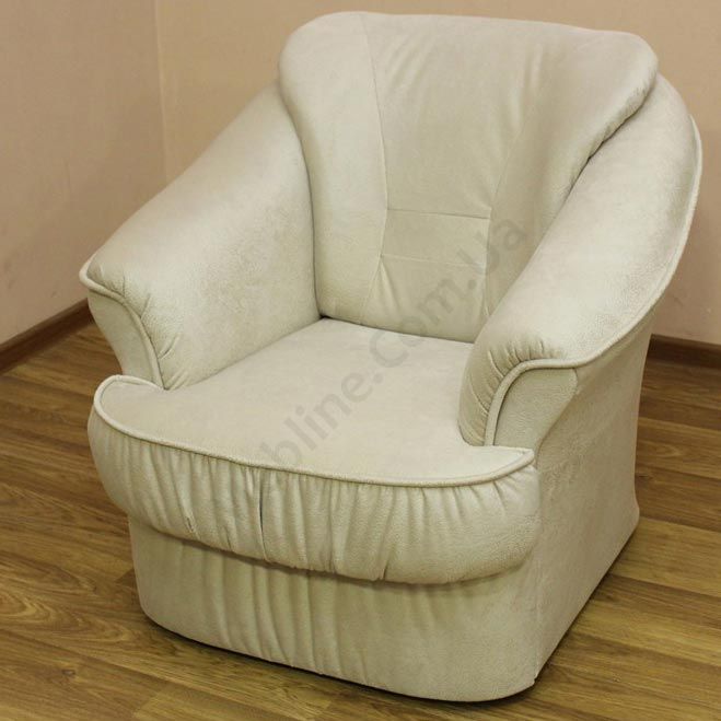 Нерозкладне м’яке крісло з пишними закругленими підлокітниками.