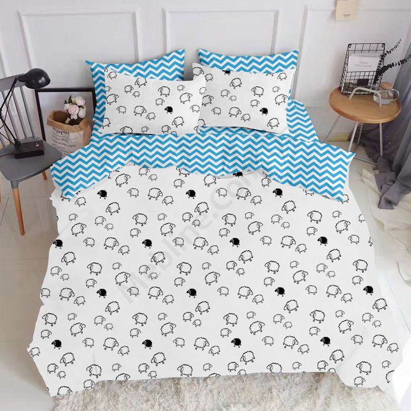 На підковдрі та наволочці зображені ягнята.Матеріал бязь (100% бавовна), щільністю 135 ниток/см2:- без домішок синтетики.
