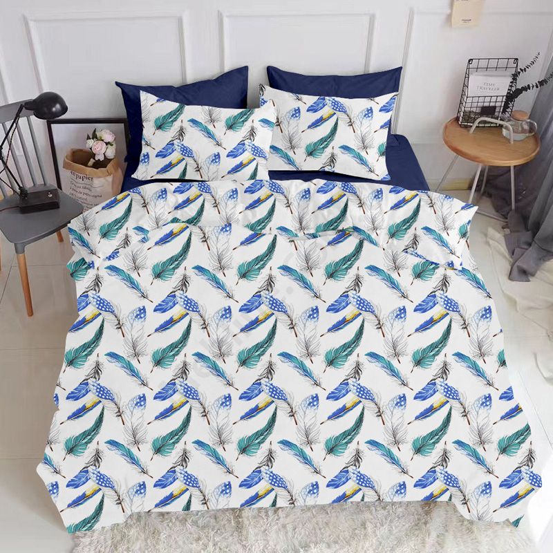 На підковдрі та наволочці зображені пір’їни.Матеріал бязь (100% бавовна), щільністю 135 ниток/см2:- без домішок синтетики.