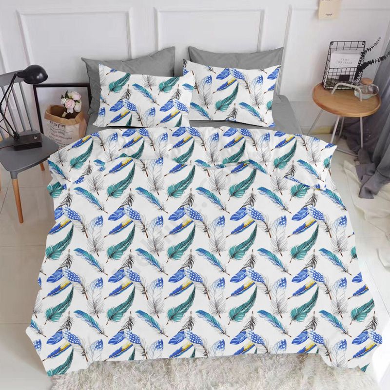 На підковдрі та наволочці зображені пір’їни.Матеріал бязь (100% бавовна), щільністю 135 ниток/см2:- без домішок синтетики.