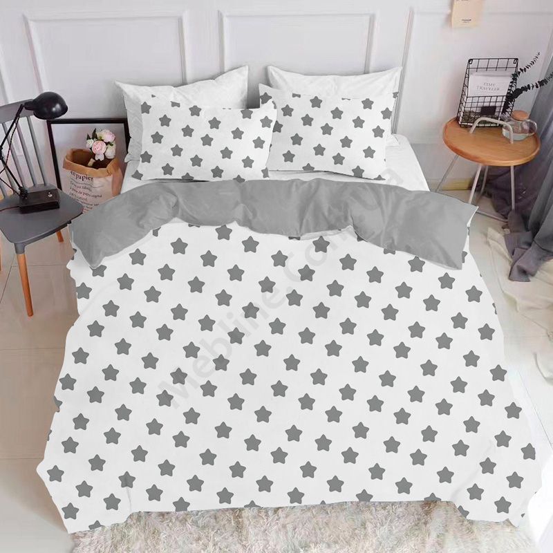 На підковдрі та наволочці зображені сірі зірки на білому.Матеріал ранфорс (100% бавовна), щільністю 135 ниток/см2:- без домішок синтетики.