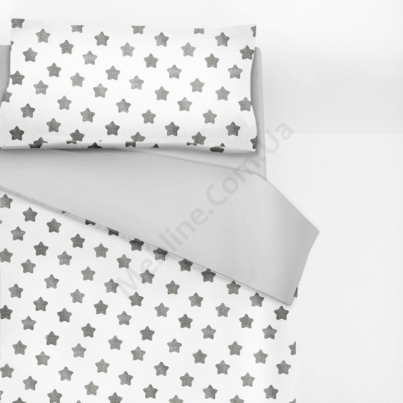 На підковдрі та наволочці зображені сірі зірки на білому.Матеріал ранфорс (100% бавовна), щільністю 135 ниток/см2:- без домішок синтетики.