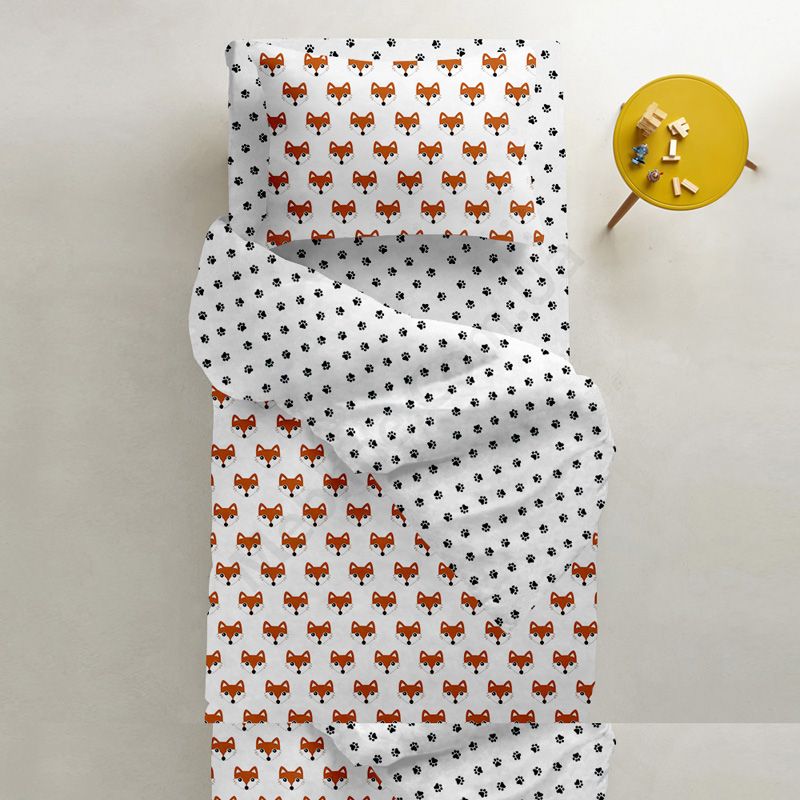 На підковдрі та наволочці лисячі мордочки.Матеріал — бязь (100% бавовна), щільністю 135 ниток/см2:- без домішок синтетики.
