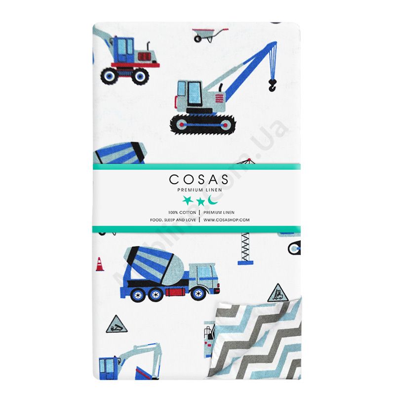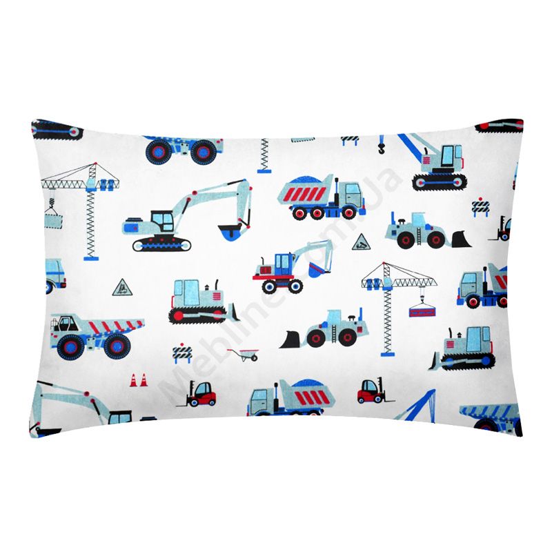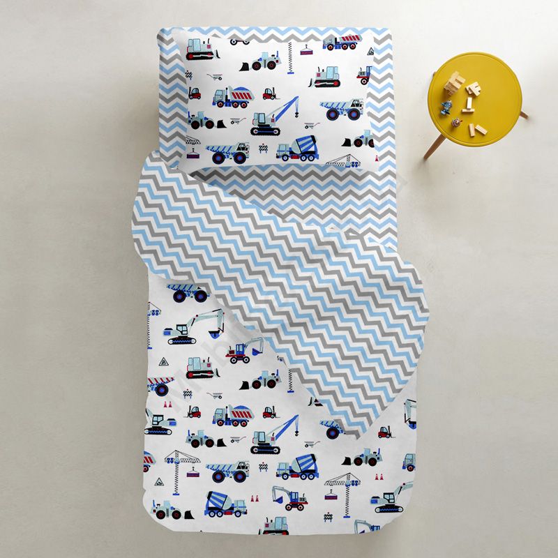 На підковдрі та наволочці зображені будівельні машинки.Матеріал — бязь (100% бавовна), щільністю 135 ниток/см2:- без домішок синтетики.