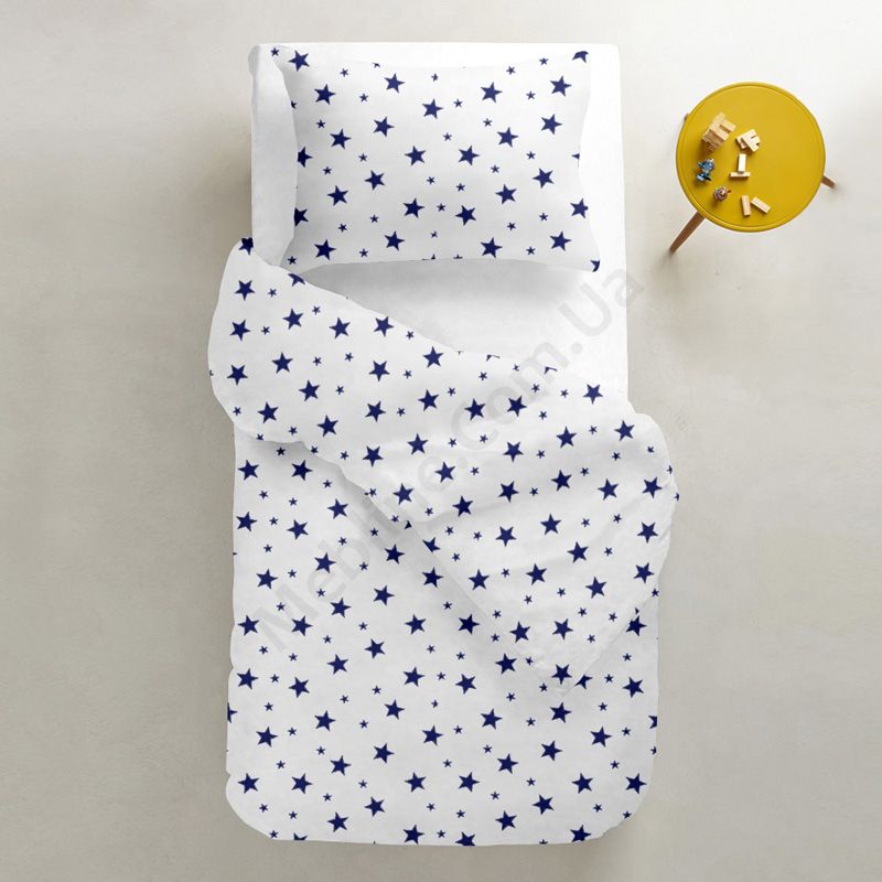 На підковдрі та наволочці зображені зірки.Матеріал ранфорс (100% бавовна), щільністю 135 ниток/см2:- без домішок синтетики.