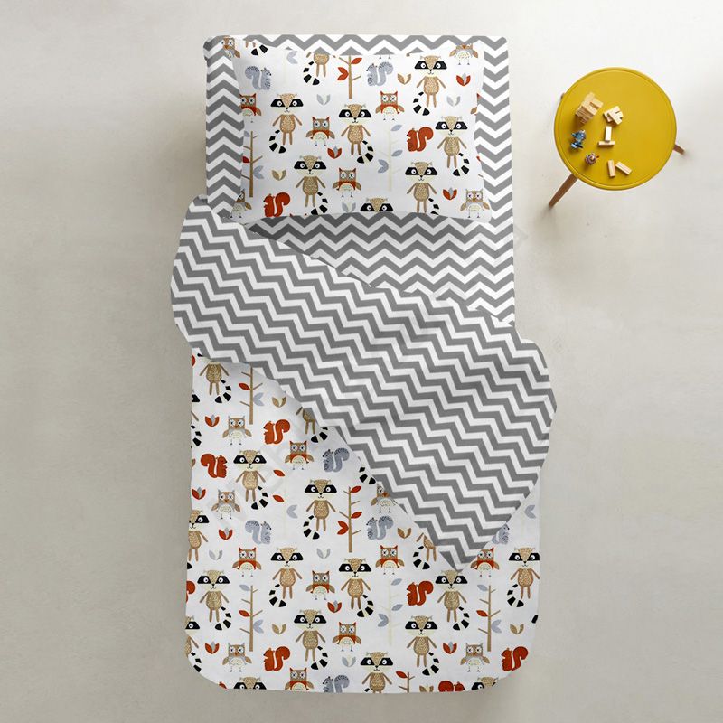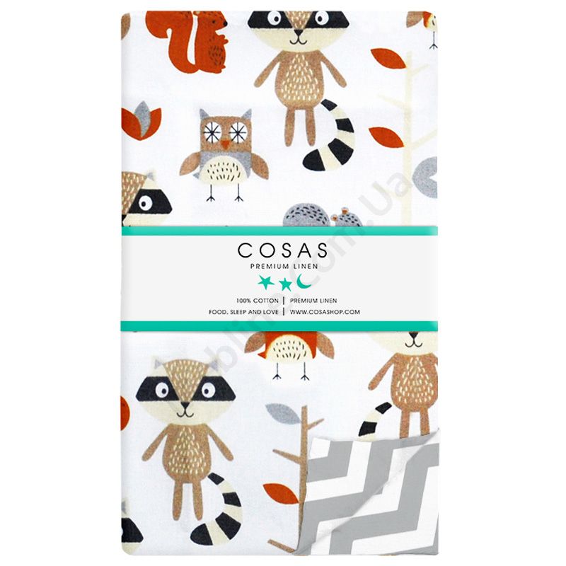 На підковдрі та наволочці зображені звірята.Матеріал — бязь (100% бавовна), щільністю 135 ниток/см2:- без домішок синтетики.