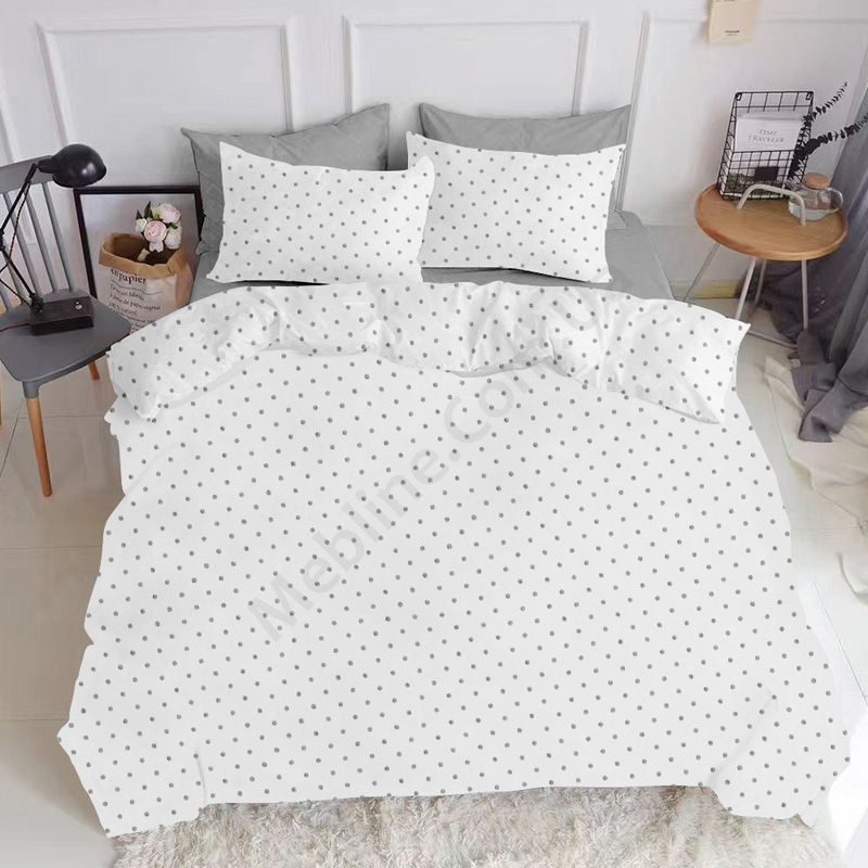 На підковдрі та наволочці візерунок у вигляді сірого горошку на білому.Матеріал ранфорс (100% бавовна), щільністю 135 ниток/см2:- без домішок синтетики.