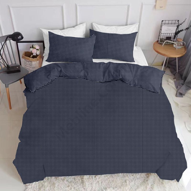 На підковдрі та наволочці візерунок у вигляді білого горошку на синьому.Матеріал ранфорс (100% бавовна), щільністю 135 ниток/см2:- без домішок синтетики.