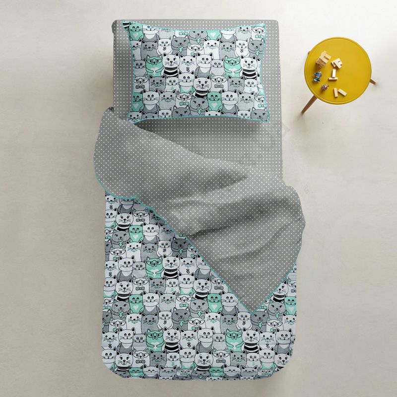На підковдрі та наволочці зображені кішки.Матеріал бязь (100% бавовна), щільністю 135 ниток/см2:- без домішок синтетики.