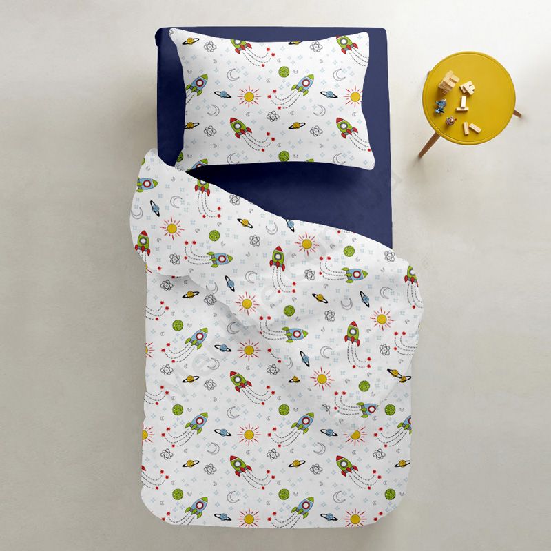 На підковдрі та наволочці візерунок на космічну тематику.Матеріал ранфорс (100% бавовна), щільністю 135 ниток/см2:- без домішок синтетики.