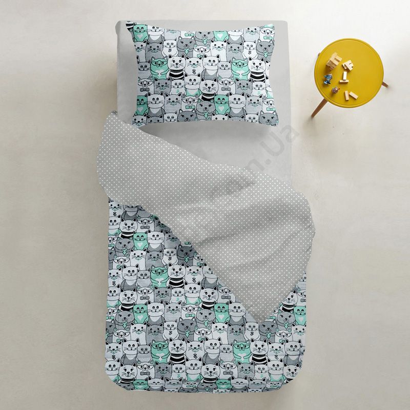 На підковдрі та наволочці зображені кішки.Матеріал бязь (100% бавовна), щільністю 135 ниток/см2:- без домішок синтетики.