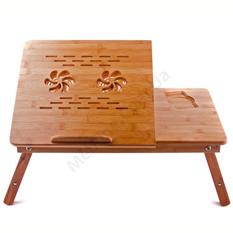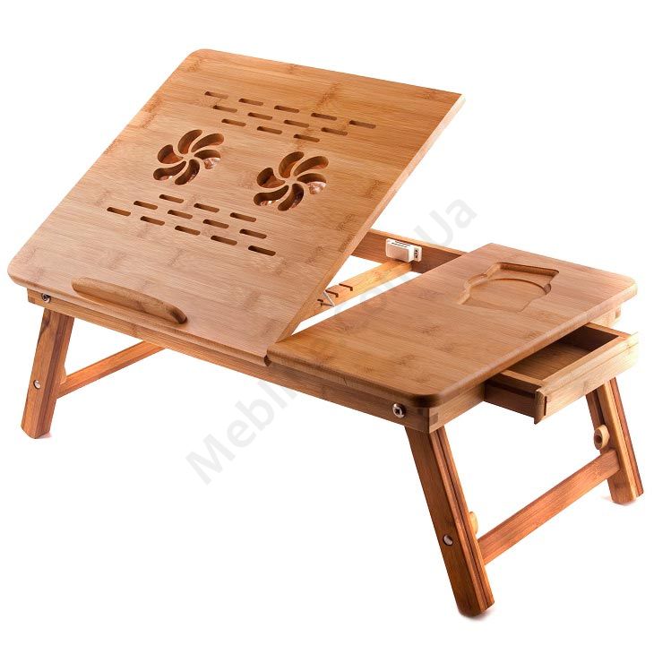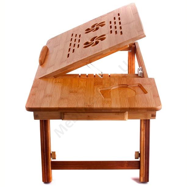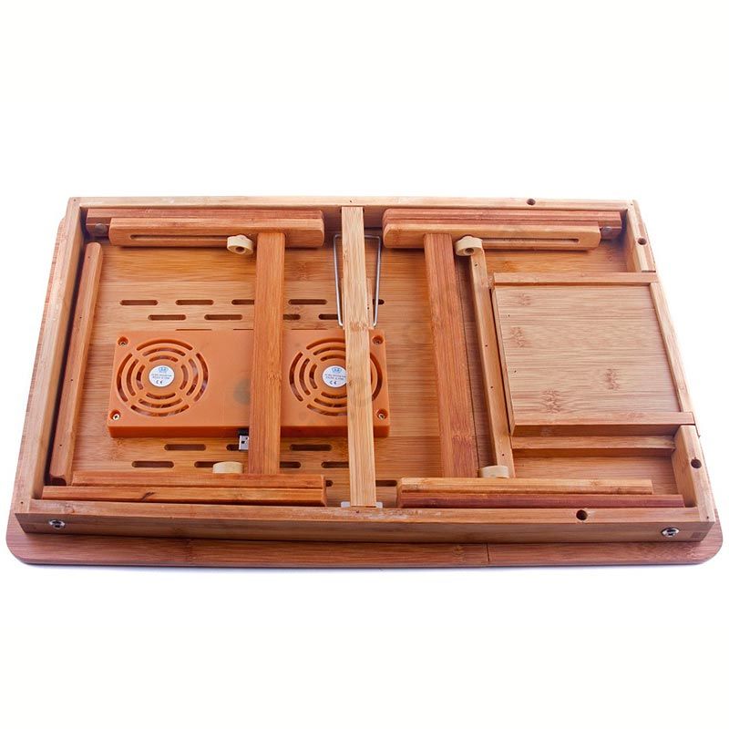 Бамбуковий столик для ноутбука з вентиляторами, підставкою і скринькою.