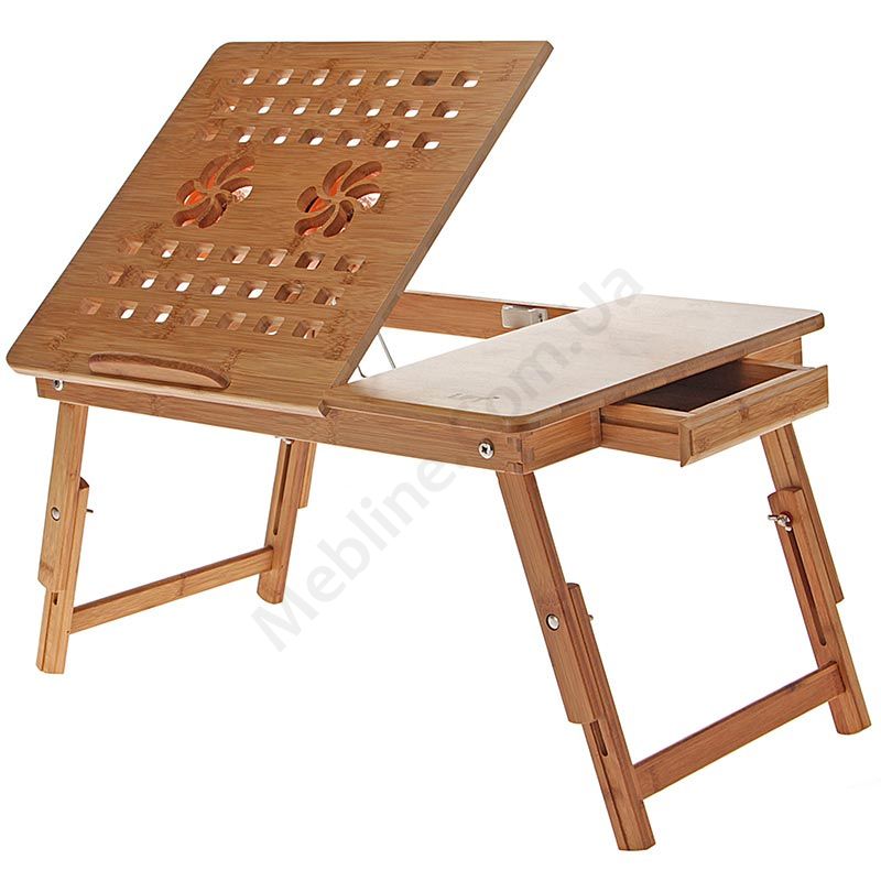 Бамбуковий столик для ноутбука з вентиляторами, підставкою і скринькою.