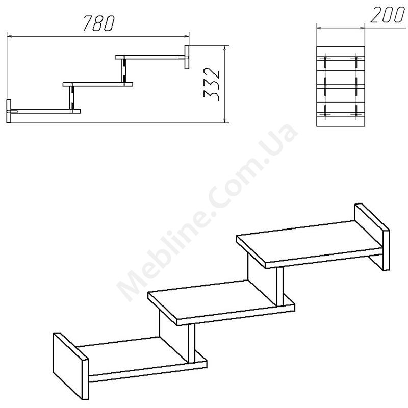 Навісна полиця з трьома рівнями.