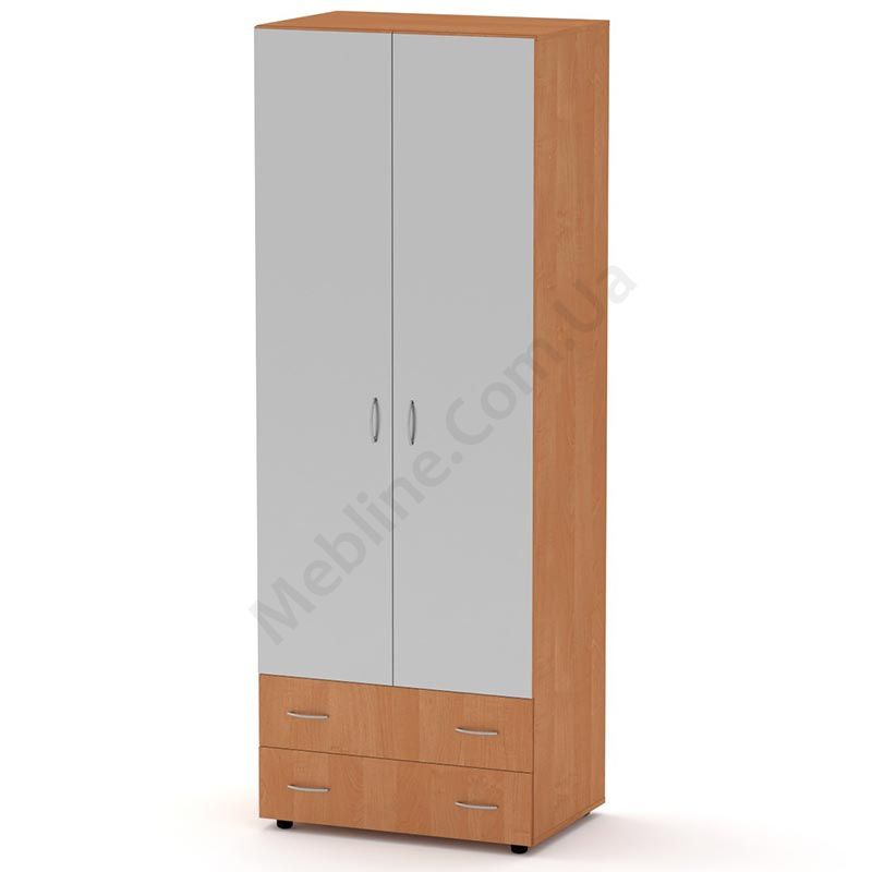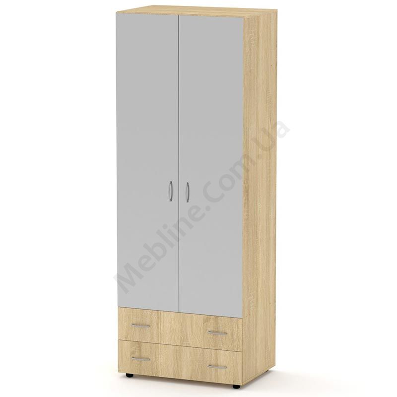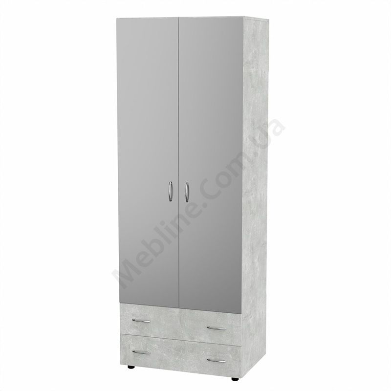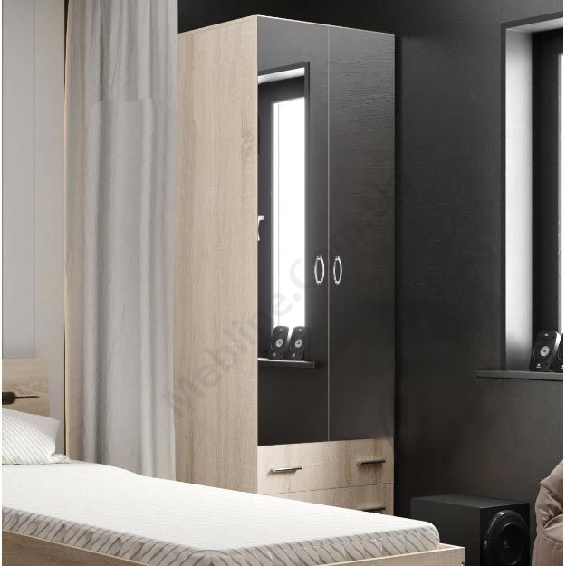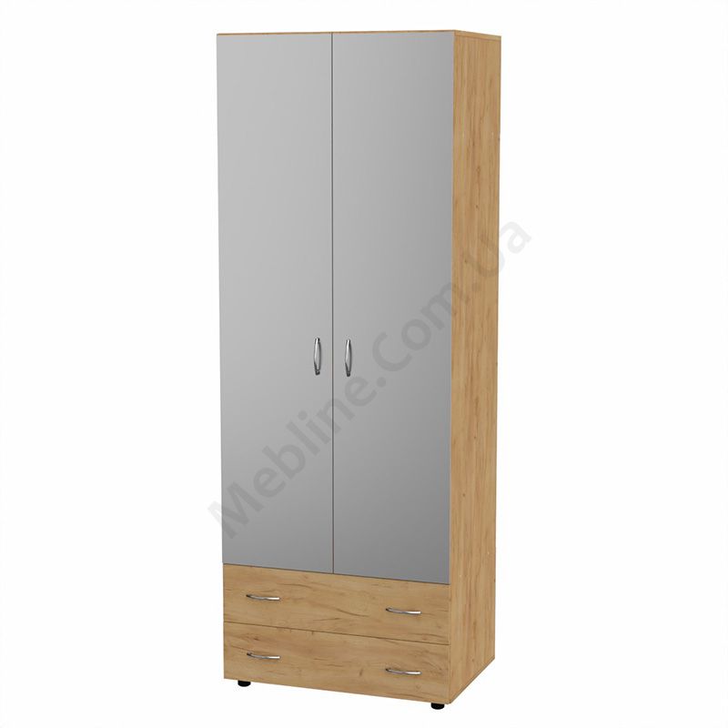 Дводверна одежна шафа з висувними шухлядами та дзеркальними дверцятами.
