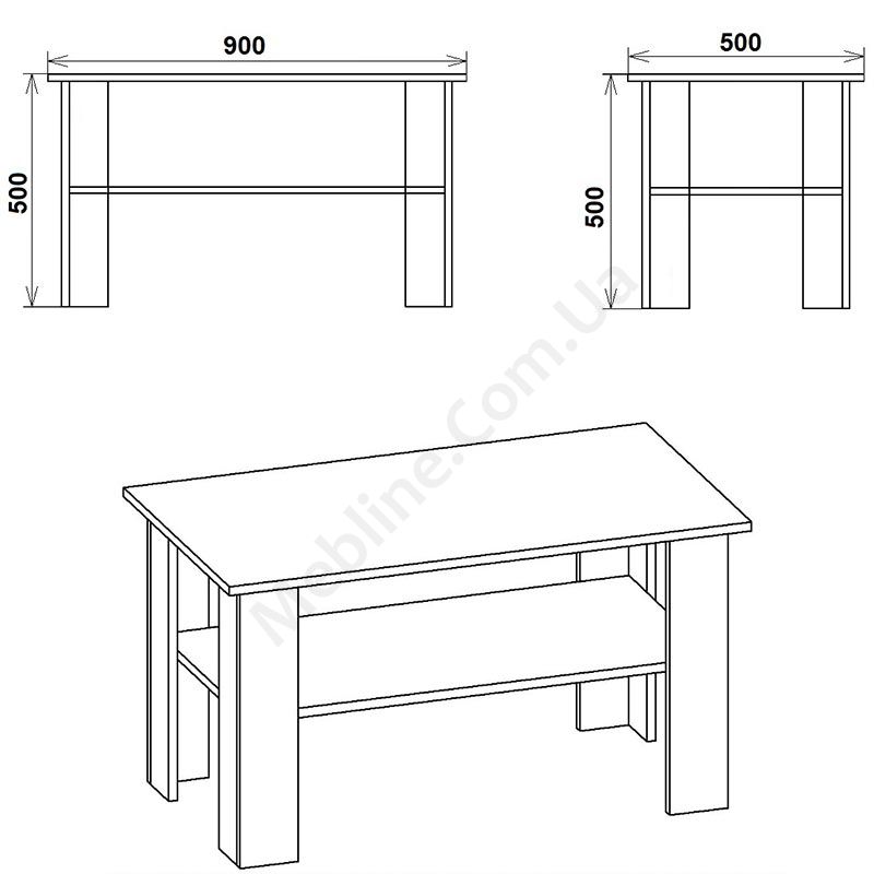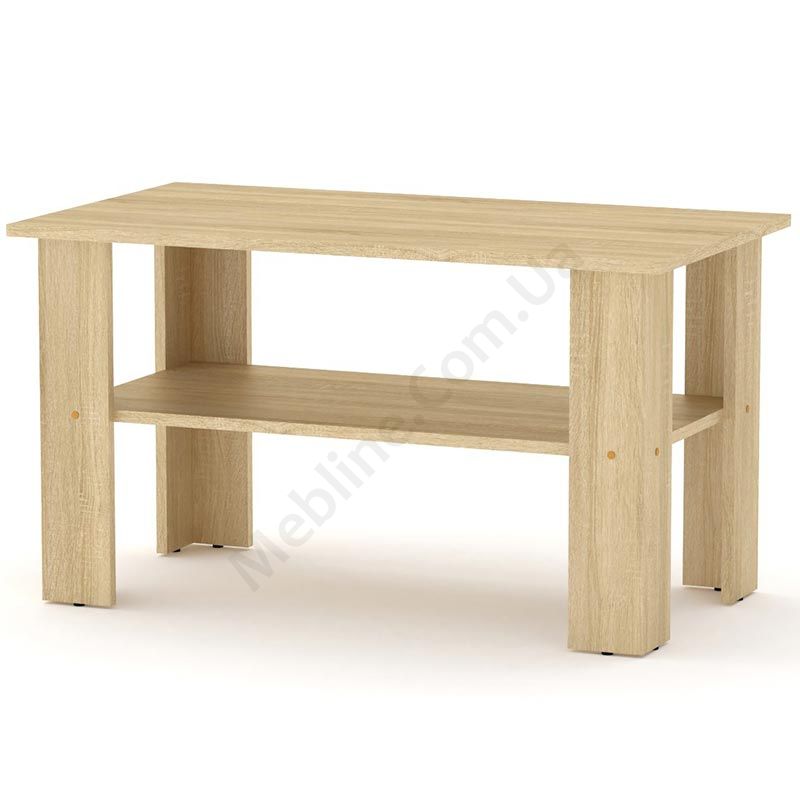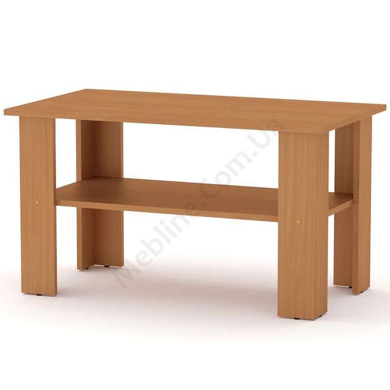 Прямокутний журнальний столик із полицею.