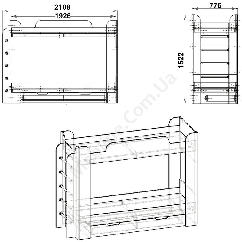 - Вертикальна драбина збоку ліжка
