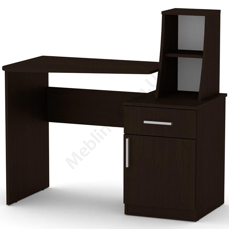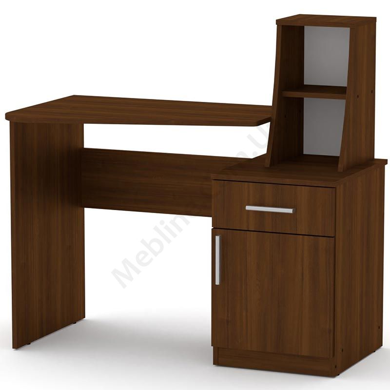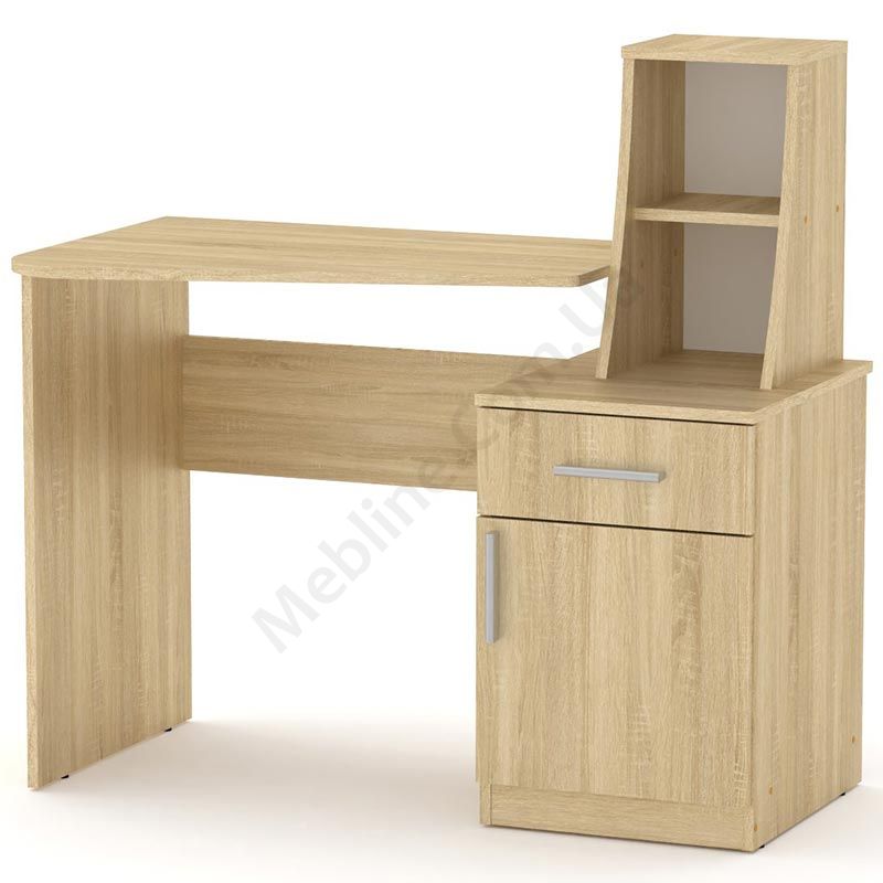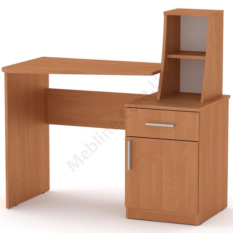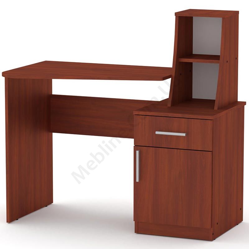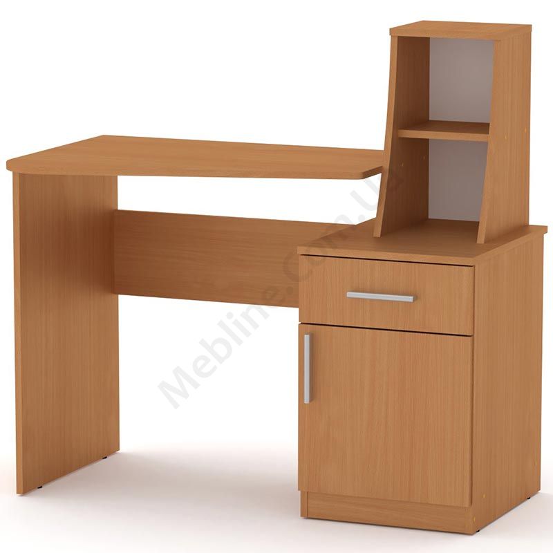 Письмовий стіл із тумбою та відкритими полицями.