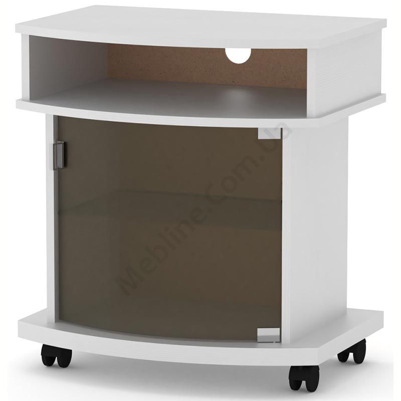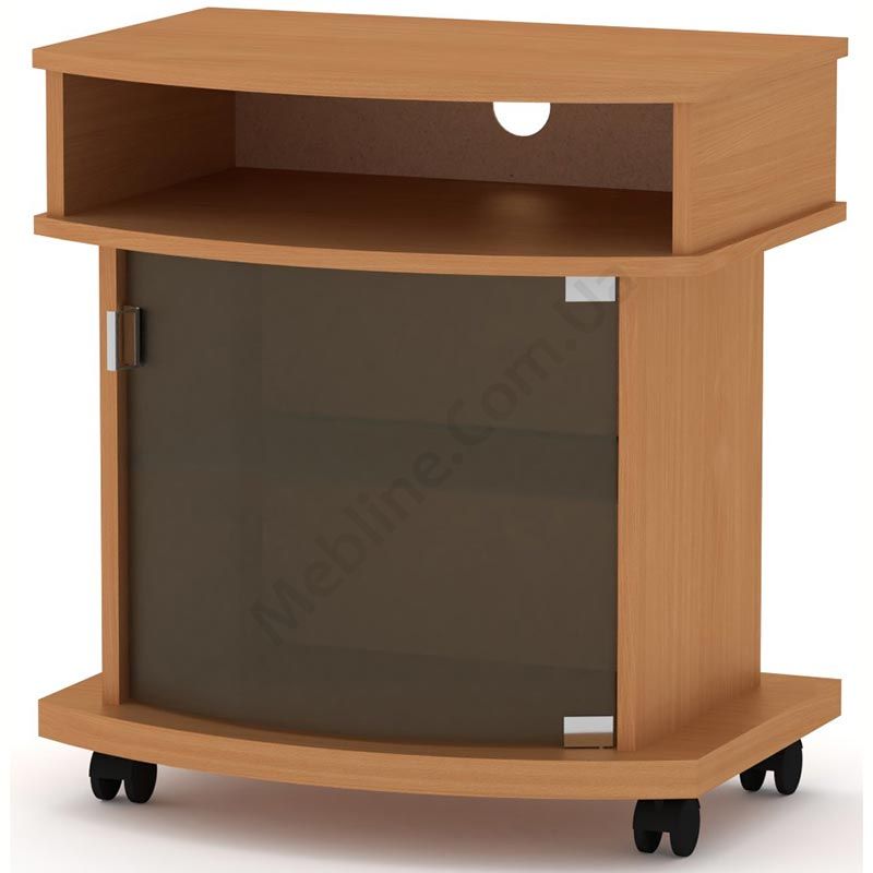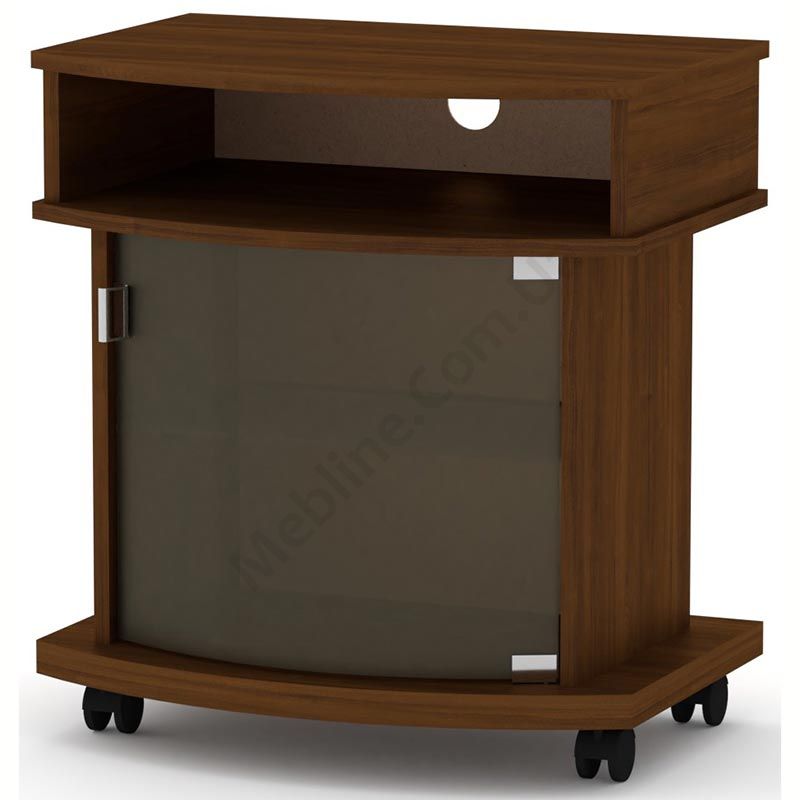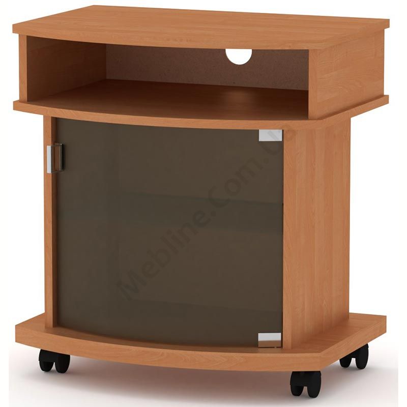Тумба під телевізор на коліщатках зі скляними дверцятами.