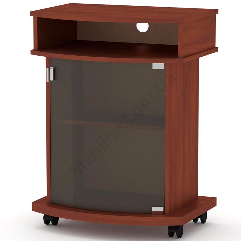 Тумба під телевізор на коліщатках зі скляними дверцятами.