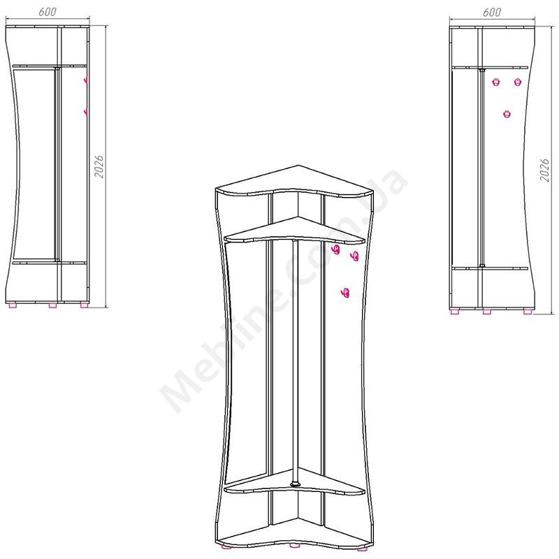 - Знизу та зверху відкриті полиці