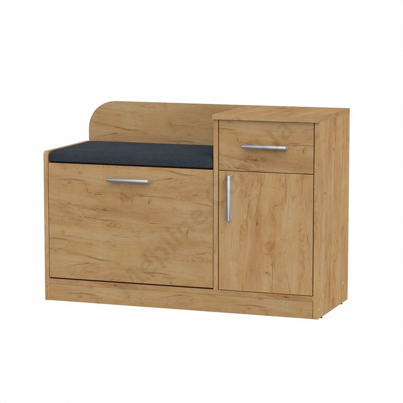 Тумба для взуття з м’яким сидінням, дверцятами та шухлядою.
