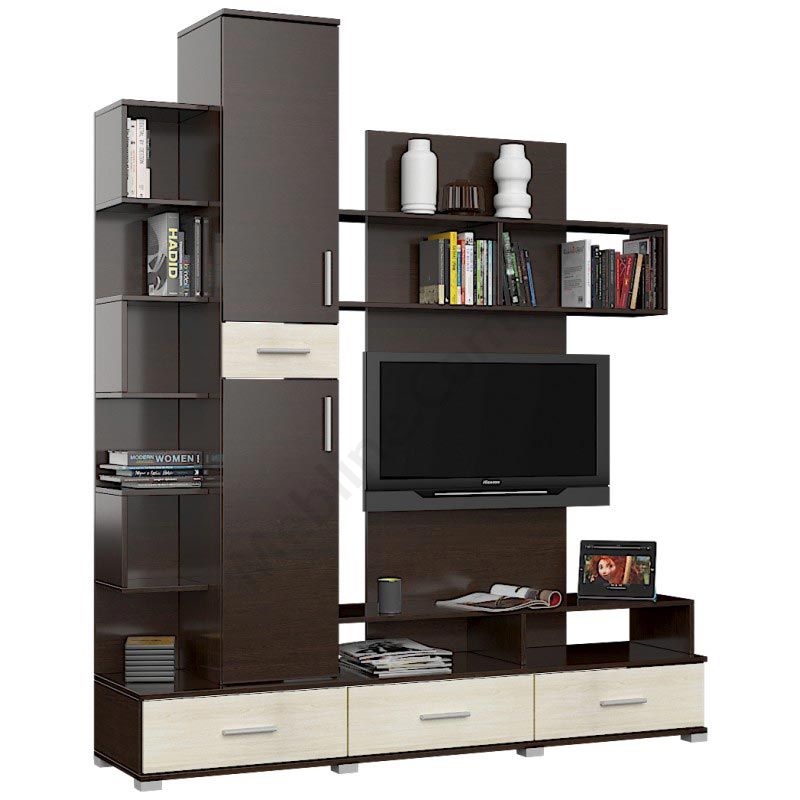 Стінка у вітальню з тумбою під телевізор, пеналом та полицями.