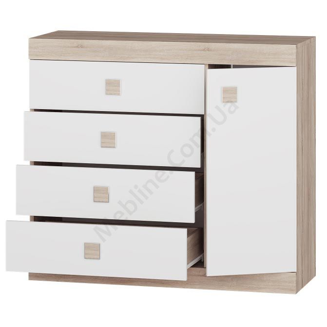 У магазині Ви можете купити Комод 5 Соната Дуб Сонома + Білий за доступною ціною та доставкою по всій Україні. Обирайте Комод (тумба) від фабрики Еверест для облаштування передпокою, вітальні, спальні в інтернет магазині меблів.