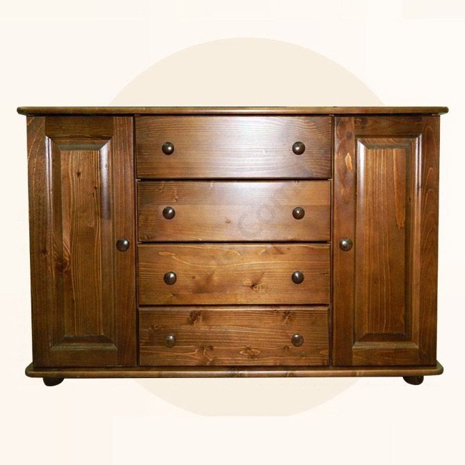Комод з натурального дерева з чотирма висувними шухлядами та двома дверцятами.