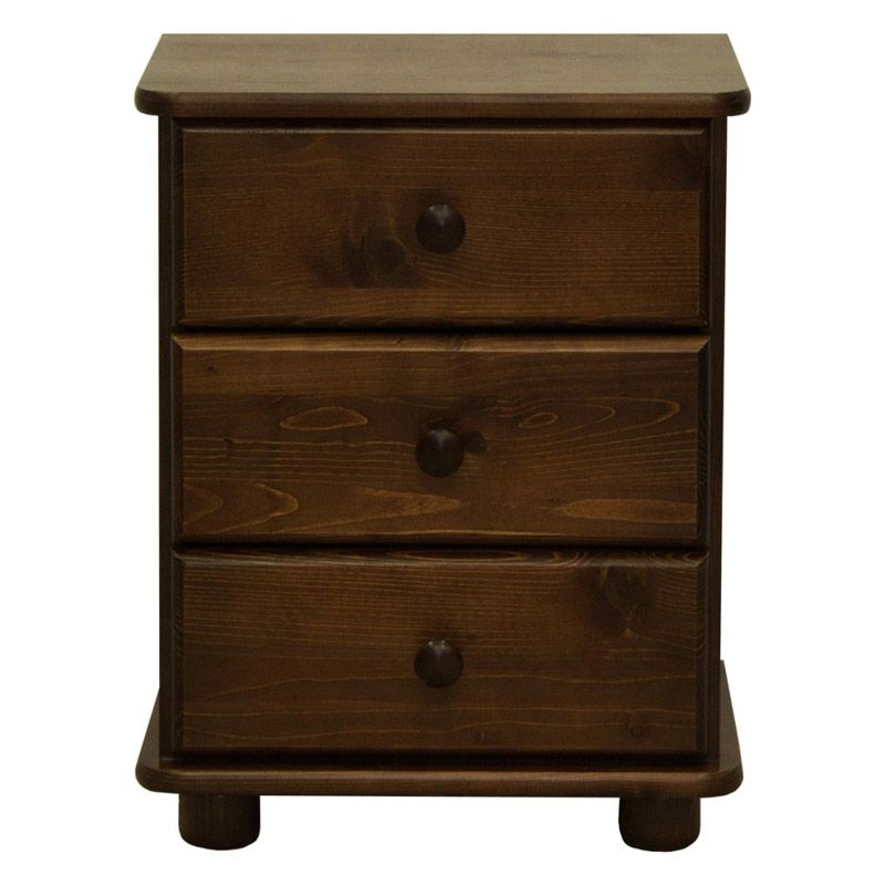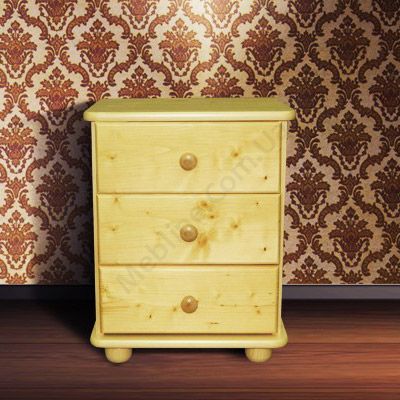 Приліжкова тумба з натурального дерева з трьома висувними шухлядами.