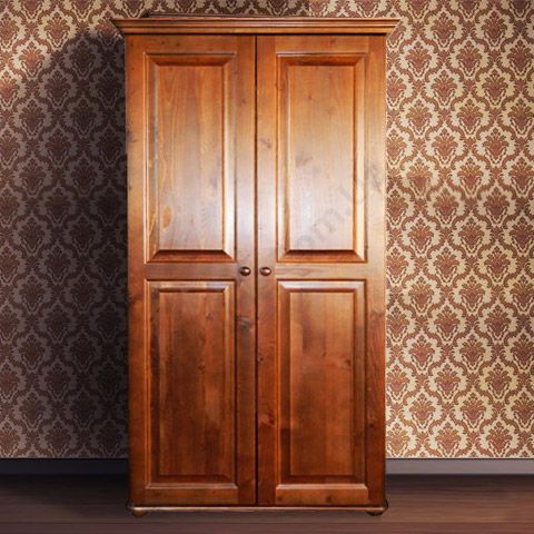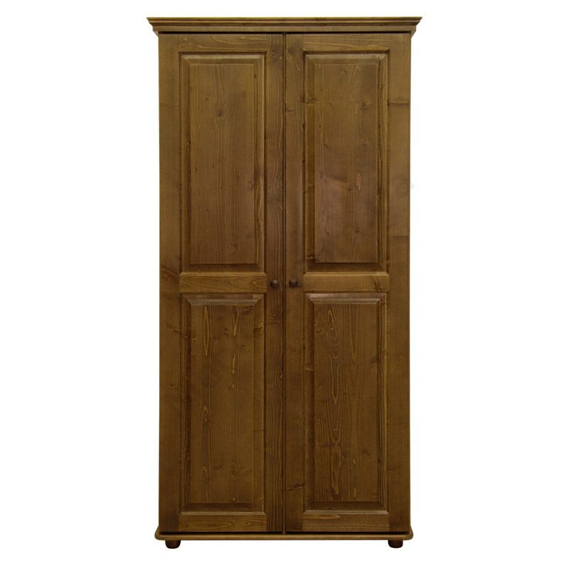 Двохдверна дерев’яна шафа зі штангою для одягу та поличками.