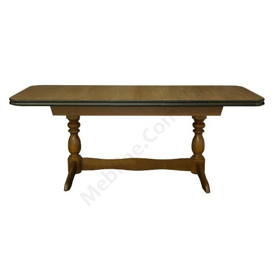 Розкладний обідній стіл з натурального дерева на різьблених ніжках.
